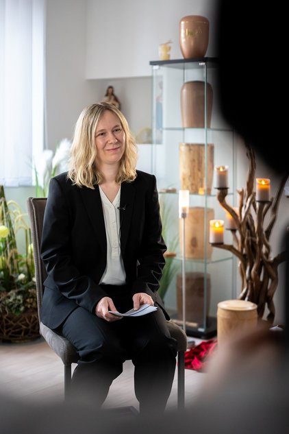 Anette Dölzer-Nachtmann ist Bestatterin. Sie begleitet Menschen auf ihrem letzten Weg – und Angehörige in einer der schwersten Phasen ihres Lebens. Sie hat die Trauerhilfe Emmerling übernommen, nachdem ihr Vater viele Jahre im Betrieb tätig war und sich der bisherige Inhaber zur Ruhe setzen wollte.